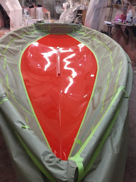 Rudder and centerboard have been shaped, sanded and a final spray applied. These will now be sanded down to 1000 grit and buffed to a shine.