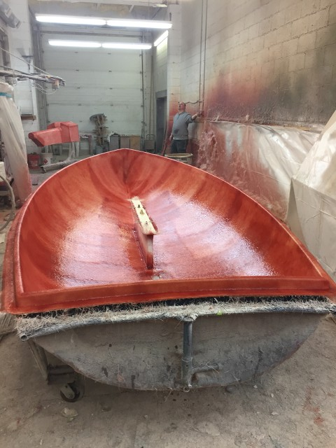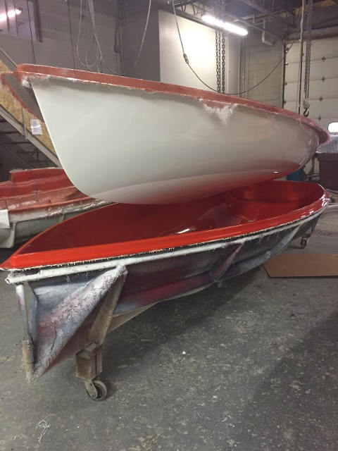 Finished hull being pulled out of the mold.