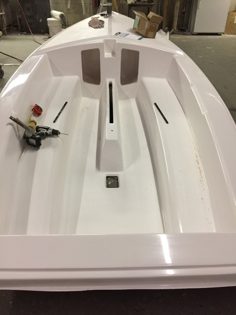 The process of rigging the boat has started. Holes are burred out and the cap is being fitted.