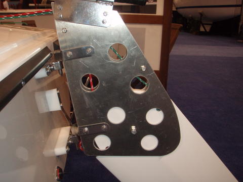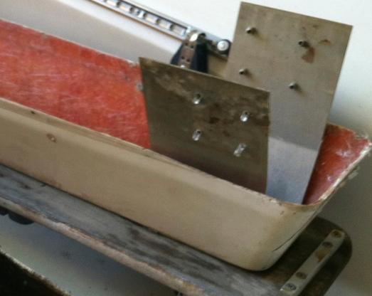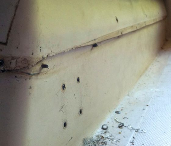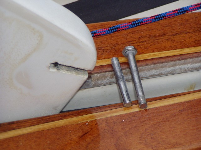 Location of the rivits in the centerboad trunk to which the aluminum bridge was secured.