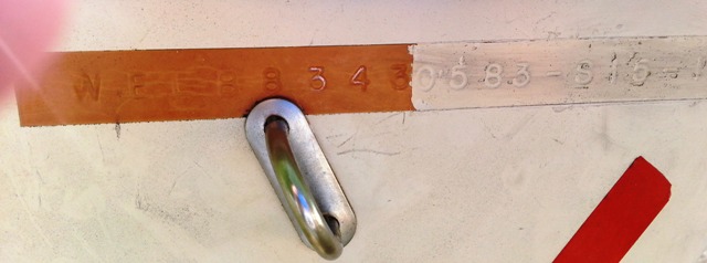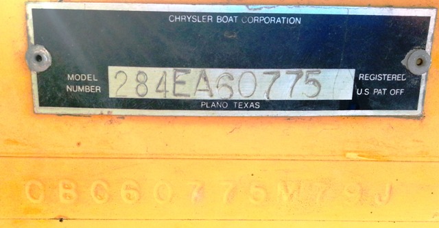 1981 TMI Mutineer HIN. I wonder what is under the tag? Notice that the top tag has Chrysler Boat Corporation cut off. And it doesn’t seem as if the serial number is complete.
